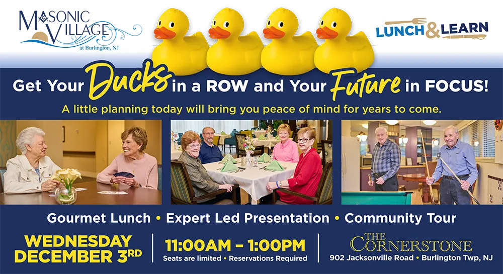 You are invited to indulge in a refreshing and informative presentation highlighting everything Masonic Village at Burlington offers….continued
